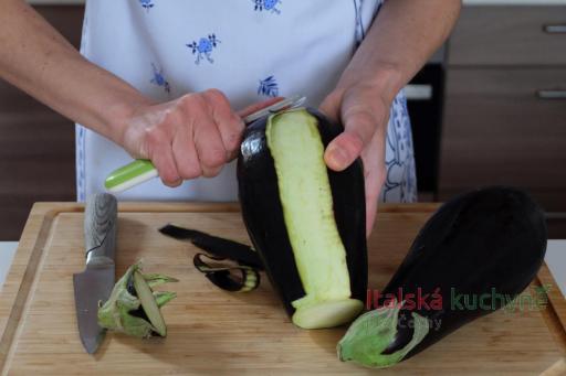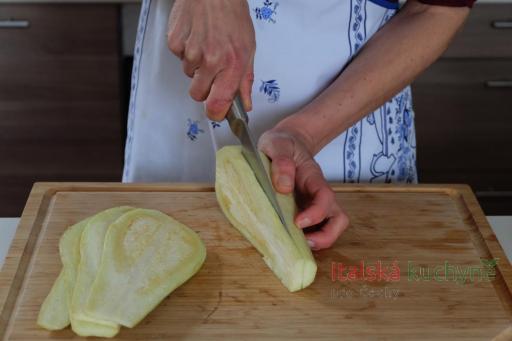 Oloupané lilky nakrájíme na podélné plátky asi 0,5 cm silné...