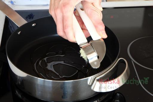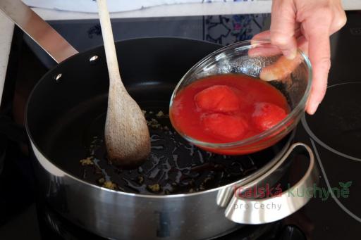 Mezitím si připravíme rajčatovou omáčku: česnek oloupeme a prolisujeme. Ve vhodném hrnci anebo v hluboké teflonové pánvi rozehřejeme olivový olej, přidáme česnek a na mírném ohni ho minutu restujeme...