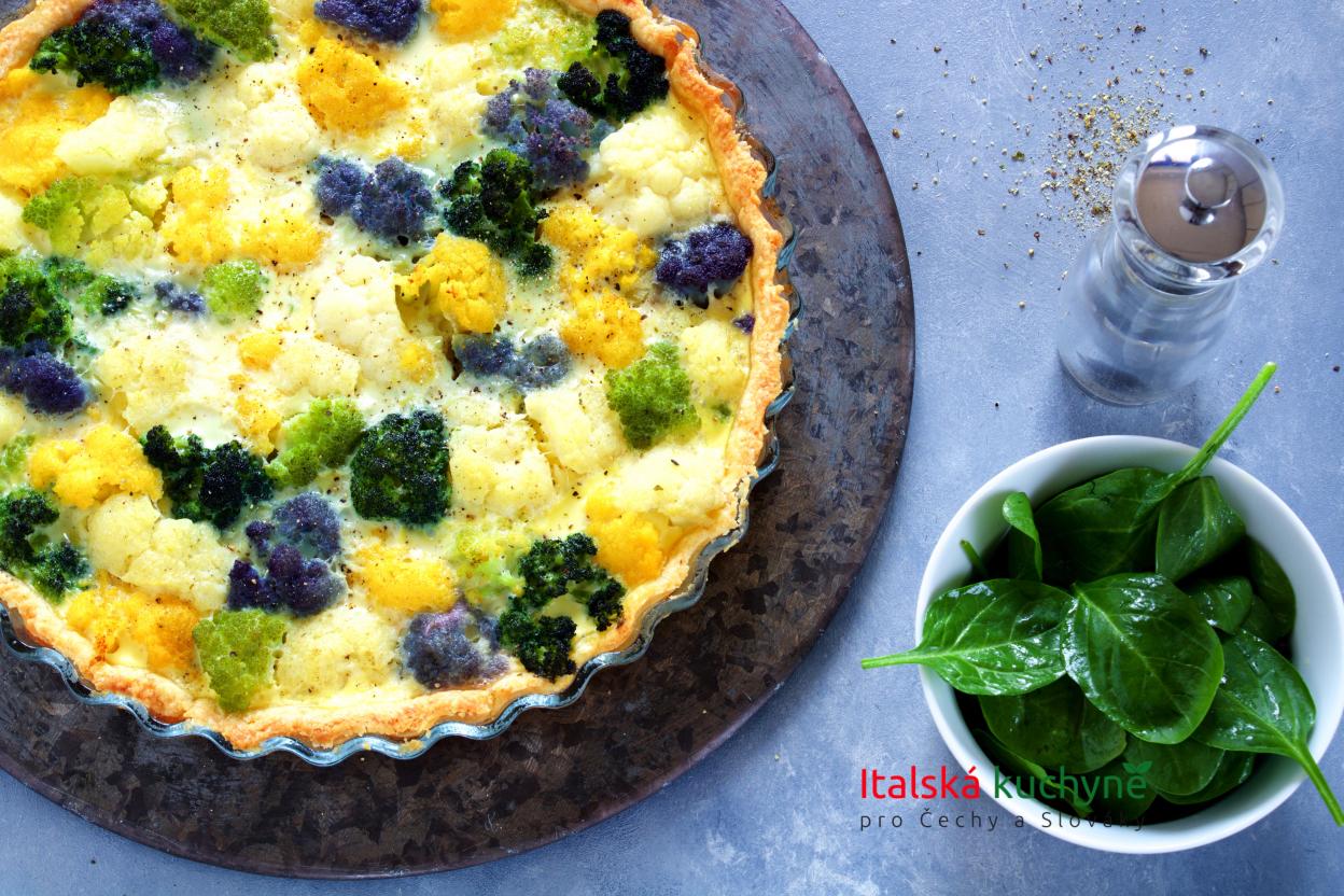 Základem našeho koláče je parmazánové křehké těsto (it. pasta frolla salata al parmigiano), výborné pro jakýkoliv slaný koláč či jednohubky. Květák obohatíme tvrdým sýrem (například parmazán, fontina, ementál, gruyér), podle chuti můžeme přidat i šunku nakrájenou na kostičky. Náš koláč zakončíme jemnou náplní z dobrého čerstvého mléka, vajec a másla.